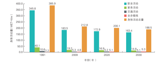 預(yù)計2020年和2030年中國成年居民平均身體活動總量還將繼續(xù)下降。